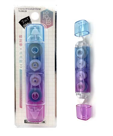 Штрих - Лента + Клей 5мм х 5м / 5мм х 4.5 м DJ-389 CP-9654 Двусторонний, прозрачный тонированный корпус ,ассорти, блистер (4/24/576)