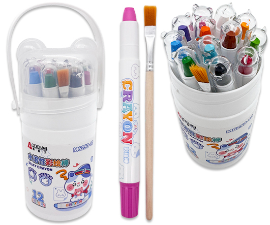 Мелки масляные 12 цв. DM-79 выкручивающиеся 13см, с кисточкой, в пластиковой баночке M6250-12 (1/12/96)