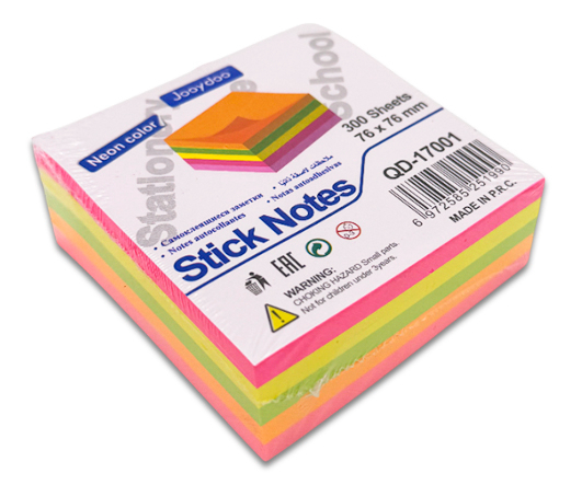 Блок самоклеящийся JOOYDOO QD-17001 "Неон" 76х76мм, 300 листов, бумажный, 5 цветов в блоке (4/168)