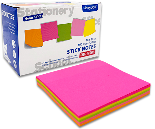 Блок самоклеящийся JOOYDOO QD-17006 "Неон" 76х76мм, 100 листов, бумажный, квадратный, 5 цветов в блоке (20/600)