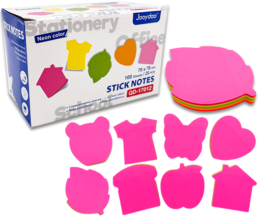 Блок самоклеящийся JOOYDOO QD-17012 "Неон" 76х76мм, 100 листов, бумажный, фигурный, 5 цветов в блоке, ассорти (20/600)