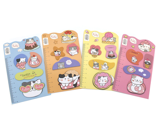 Закладки самокл. CU-35 "Котики-десерты" бумажные 35*40мм 4 видов*15листов в блоке с линейкой, цвета ассорти (4/80/1440)