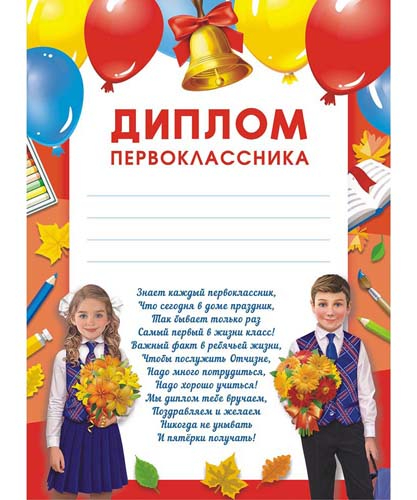 Бланки-Грамота Диплом первоклассника с текстом (бумага) ЛиС (20)