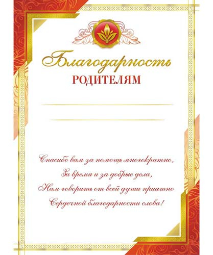 Бланки-Благодарность родителям с текстом (бумага) ЛИС (20)