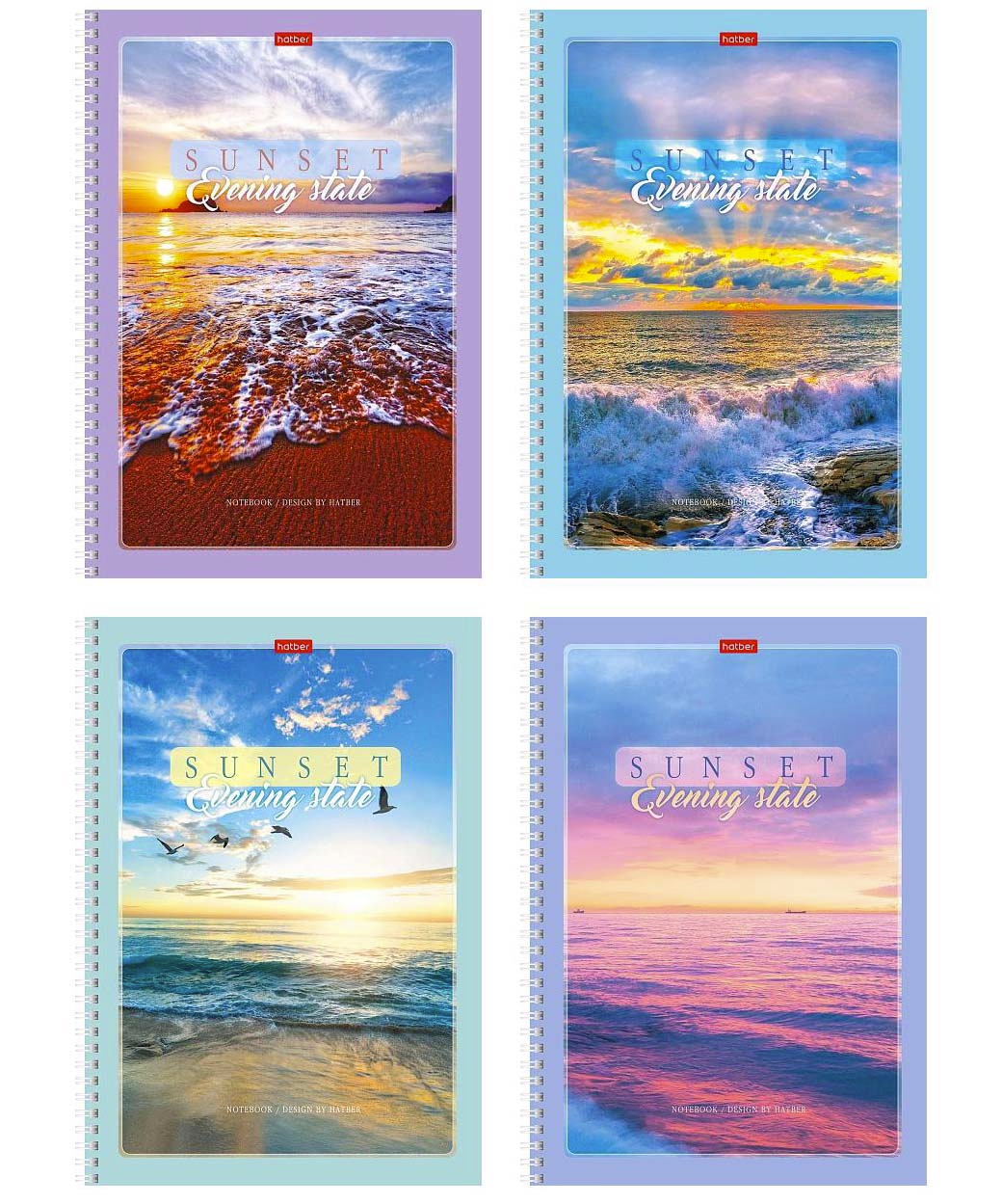Тетрадь 80 л. А4 Хатбер спираль "Закаты" клетка, многоуров.перфорация, 4 диз. в блоке 80Т4В1гр (4/28)
