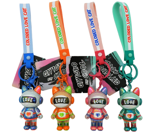 Брелок для ключей DE-258 "Котик LOVE" керамическая фигурка 8см, с карабином, кольцом и петлей, цвета ассорти (1/12/300)