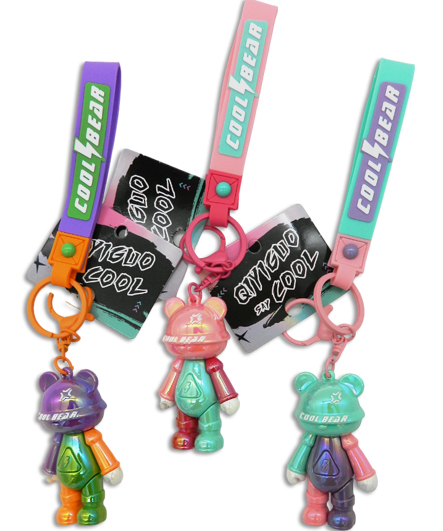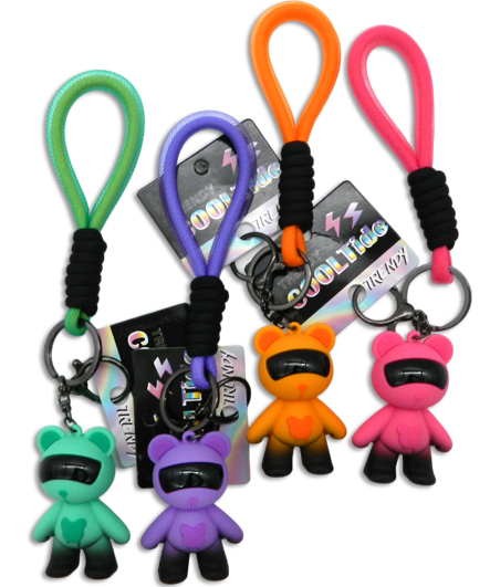 Брелок для ключей DE-262 "Крутой мишка" керамическая фигурка 8см, с карабином, кольцом и петлей, цвета ассорти (1/12/300)