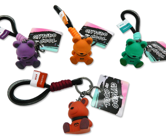 Брелок для ключей DE-260 "Мишка CHERISH" резиновая фигурка 5см, с карабином, кольцом и петлей, цвета ассорти (1/12/300)