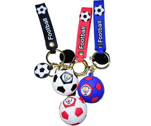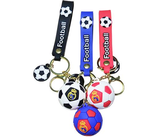 Брелок для ключей DE-322 "Футбольный мяч" резиновая фигурка 4см, с кольцом и карабином, цвета ассорти (1/50/300)