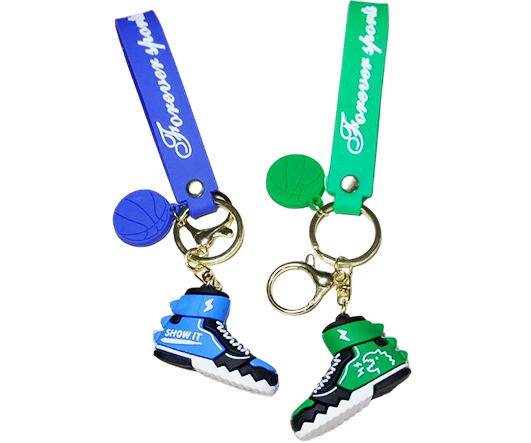 Брелок для ключей DE-327 "Кросы" резиновая фигурка 6см, с кольцом, цвета ассорти, в пластиковой упаковке (12/600)