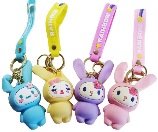 Брелок для ключей DI-72 "Милый зайка" резиновая фигурка 4,5см, с кольцом, карабином и петлей (1/100/500)