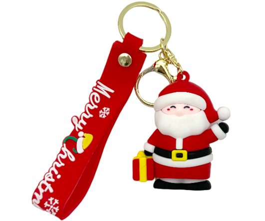 Брелок для ключей DH-195 "Санта с подарком" резиновая фигурка 6см, с кольцом, карабином и петлей (1/50/300)