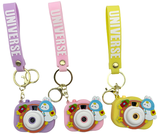 Брелок для ключей DH-167 "Фотоаппарат" пластик, 6х6см, со световым элементом, с кольцом, карабином и петлей, на батарейках, ассорти (12/300)