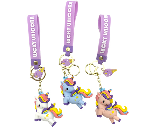 Брелок для ключей DH-169 "Единорог" резиновый, 7см, с карабином, кольцом и петлей, ассорти (12/300)