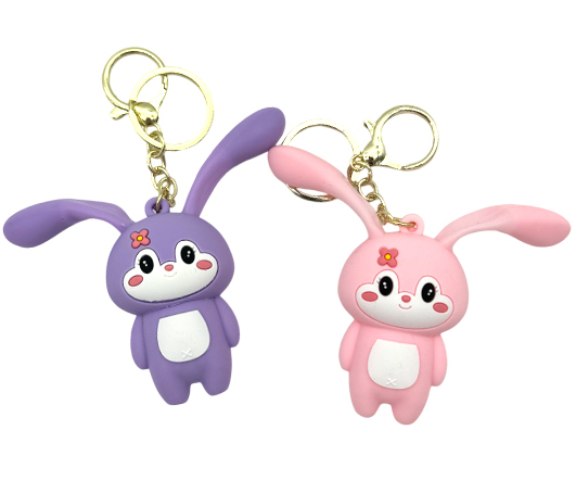 Брелок для ключей DH-172 "Зайчик" резиновый 7см, мягкий, с карабином и кольцом, цвета ассорти (12/300)