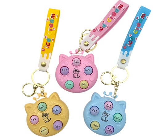 Брелок для ключей DH-174 "Котик" игра-антистресс, пластик 7х7см, с карабином, кольцом и петлей, цвета ассорти (1/50/300)