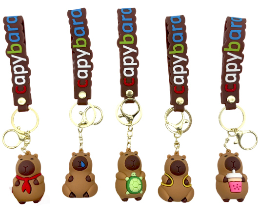 Брелок для ключей DI-73 "Капибары" резиновая фигурка 5,5см, с кольцом, карабином и петлей (1/100/500)