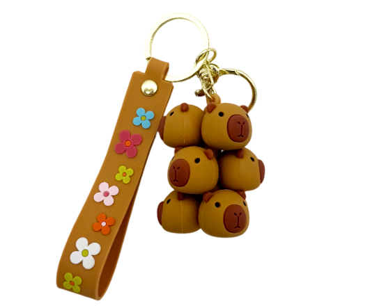 Брелок для ключей DI-70 "Капибара" резиновая фигурка 5,5см, с кольцом, карабином и петлей (1/100/500)