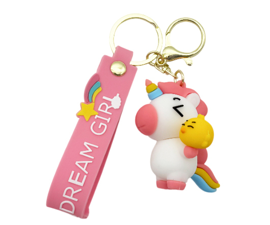 Брелок для ключей DI-76 "Единорог с птичкой" резиновая фигурка 6см, с кольцом, карабином и петлей (1/100/500)