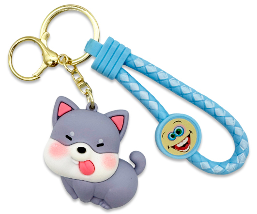 Брелок для ключей DK-358 "Корги" резиновая фигурка 5 см, с кольцом, карабином и петлей, голубой (1/10/300)