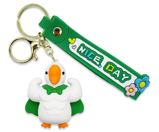Брелок для ключей DK-335 "Гусь в плаще" резиновая фигурка, 5,5см, с кольцом, карабином и петлей (1/12/300)