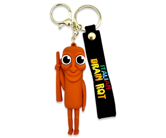 Брелок для ключей DL-362 "Тун тун Сахур" резиновая фигурка 9см, с кольцом, карабином и лентой, коричневый (1/10/300)