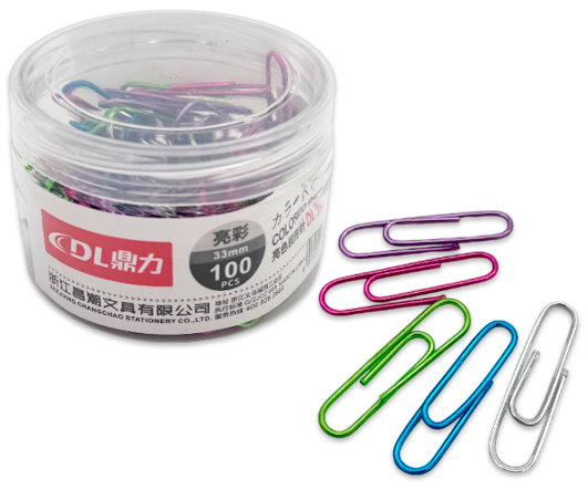 Скрепки 33 мм. 100шт. DO-516 цветные "Металлик" в пластиковой упаковке DL3959 (1/24/288)