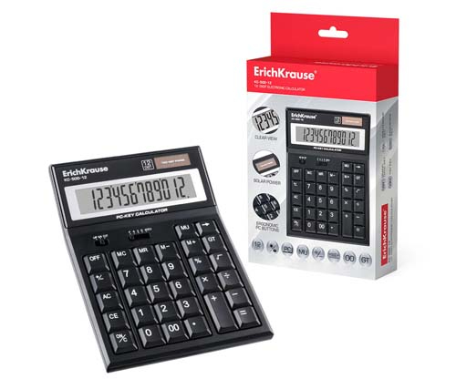Калькулятор ErichKrause PC-key KC-500-12 настольный, 12 разрядный, 140х93мм, черный, в коробке 40500 (1/20)