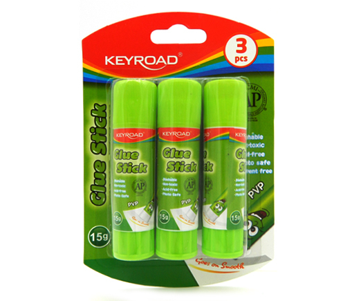Клей карандаш 15 гр. KEYROAD KR971678 PVP основа, 3 штуки, на блистере (3/3/144)