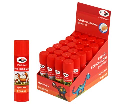 Клей карандаш 8 гр. Гамма "Мультики" PVP основа 1582022.08 (24/384)