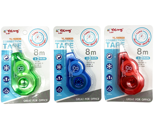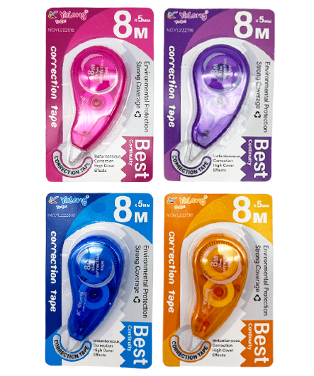 Штрих - Лента 5мм х 8м Yalong DE-553 Фигурный, прозрачный тонированный корпус 8 см, ассорти, на блистере YL193939 (3/48/1440)