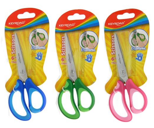 Ножницы KEYROAD KR971551 150 мм бело-синие ручки с грипом, на блистере (4/12/144)