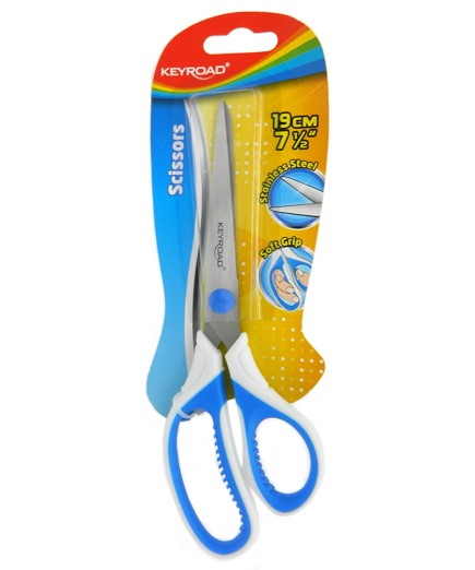 Ножницы KEYROAD KR971918 190 мм бело-синие ручки с грипом, на блистере (4/12/144)