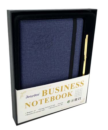 Набор подарочный QD-19208/CL-613 "Бизнес" Записная книжка А5 140л. клетка, текстиль, на резинке+ручка (1/20/40)