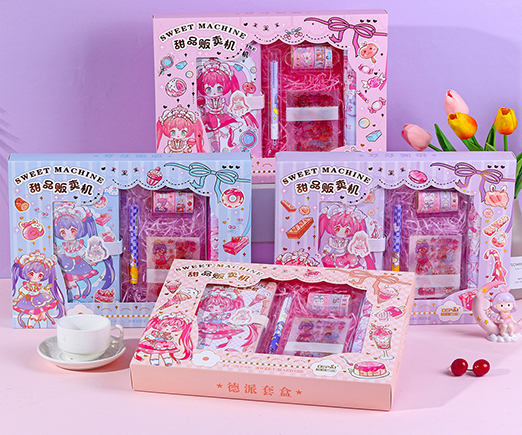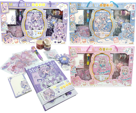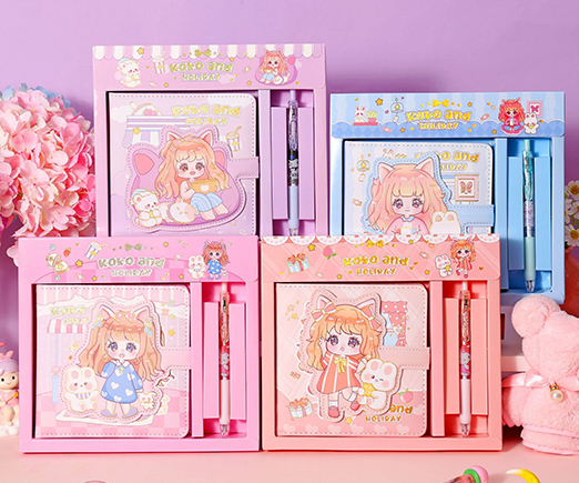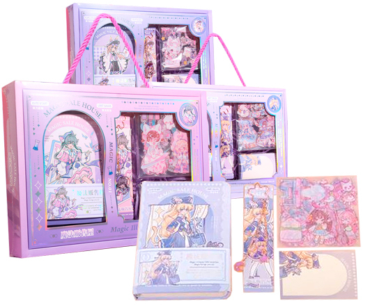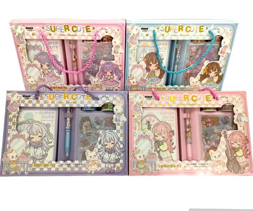 Набор подарочный CW-17 "Аниме" 2 записные книжки, 2 гелевые авт. черн. ручки, блок для записей, наклейки, клей карандаш, цвета ассорти, в к/кор №12084 (1/8/192)