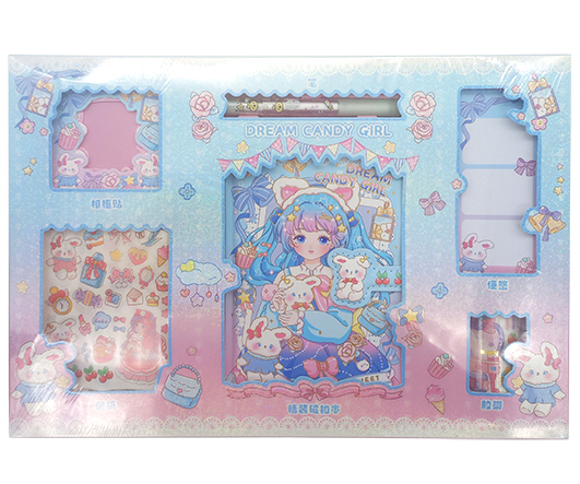 Набор подарочный DB-214 "Мечтательница" Зап.книжка 8,5*13см на магните+ блок для записей, наклейки, ассорти, в картонной коробке (1/72)