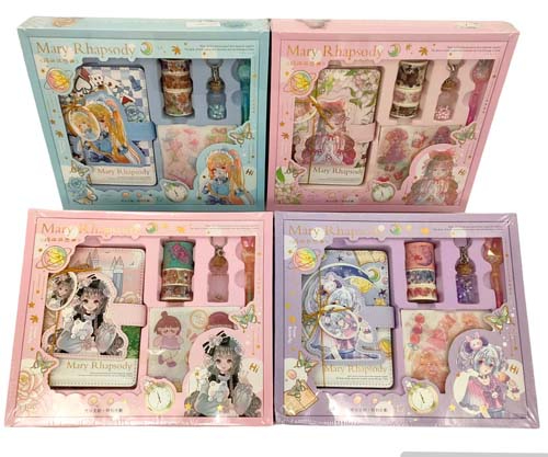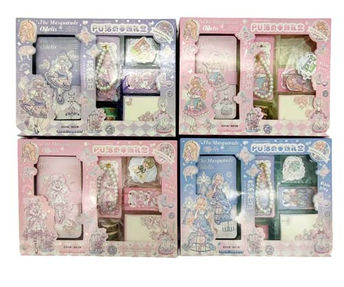 Набор подарочный DC-136 Записная книжка +ручка, декоративный скотч, значок, наклейки 4шт, браслет, стикеры, ассорти, в к/кор (1/40)