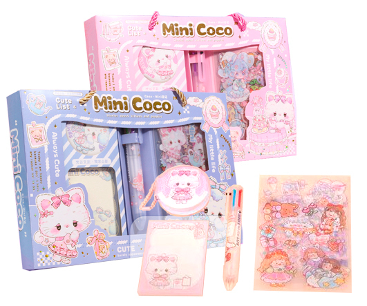 Набор подарочный DC-145 "Мини Коко" Блокнот-брелок,блок для записей, ручка 6 цветов, наклейки, в ассортименте, в к/кор (1/32/96)