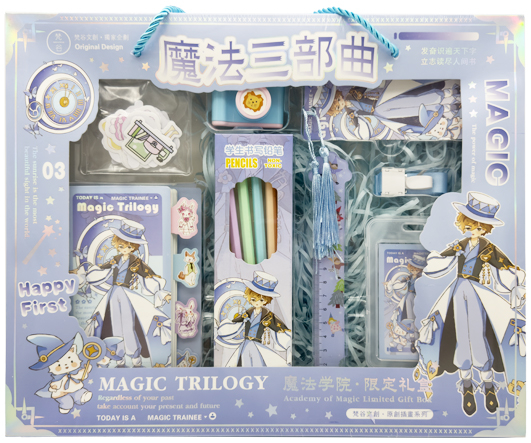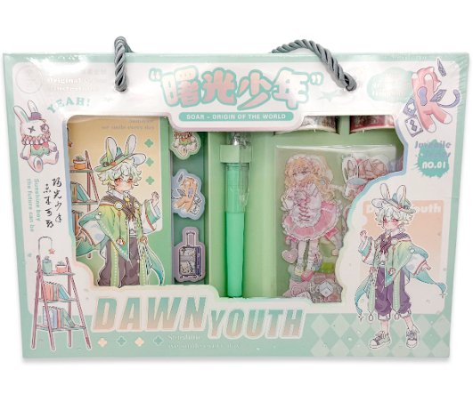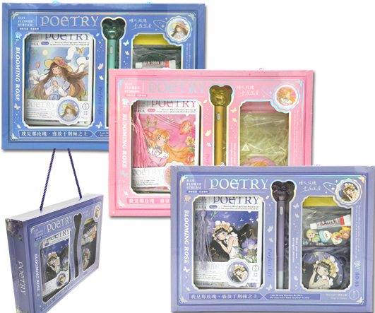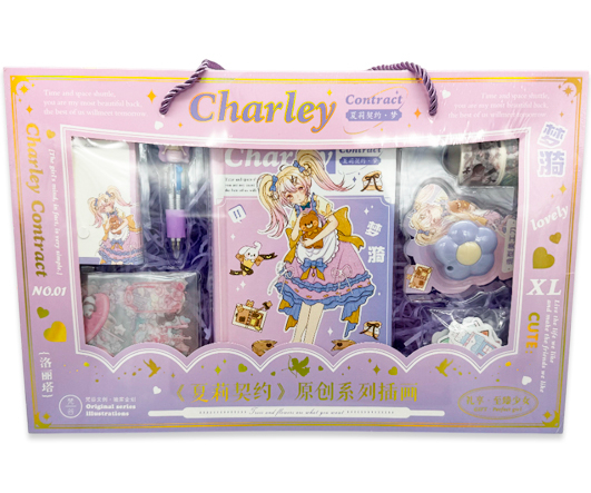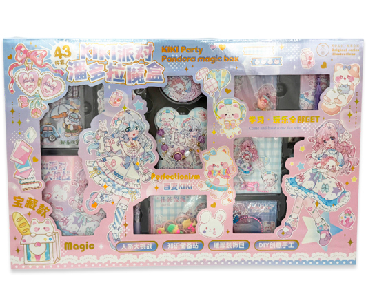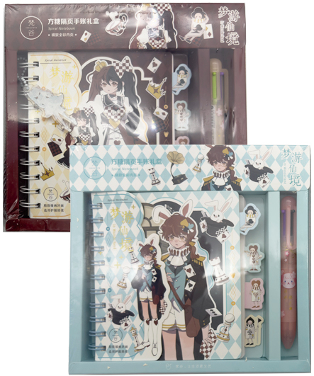 Набор подарочный DI-319 Зап. книжка+ручка, наклейки 4шт,браслет,значок,брелок, резинки 10 шт,закладки 2шт,скотч 3 шт, ассорти (1/20)