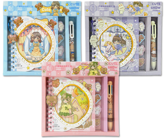 Набор подарочный DI-311 Записная книжка +2 ручки, закладки 2шт, наклейки, декоративный скотч 2шт, ассорти, в к/кор (1/48)