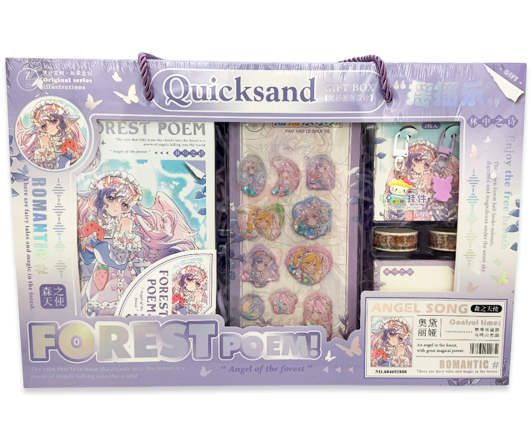 Набор подарочный DI-314 "Forest poem" Записная книжка+ блок д/записей, 2 брелка, обьемные наклейки, 2 декоративных скотча, ассорти, в к/к (1/40)