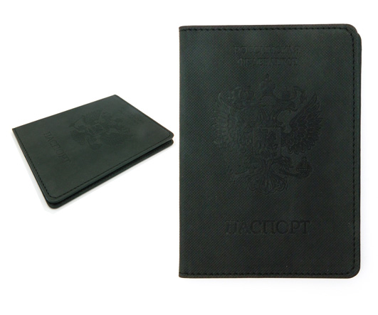 Обложка для паспорта BW-462 "ПАСПОРТ РФ" чёрный, половинки герба, экокожа (2/500)