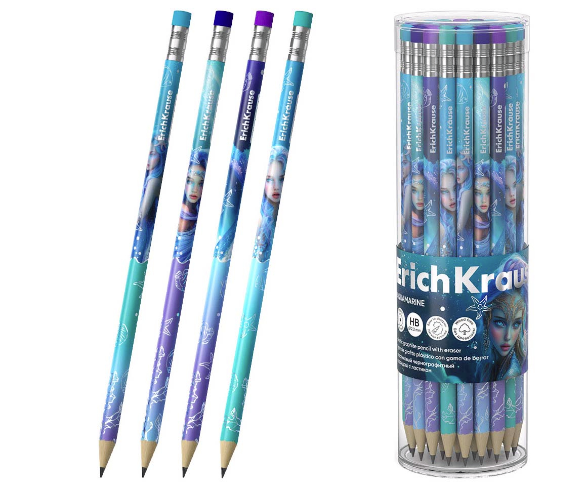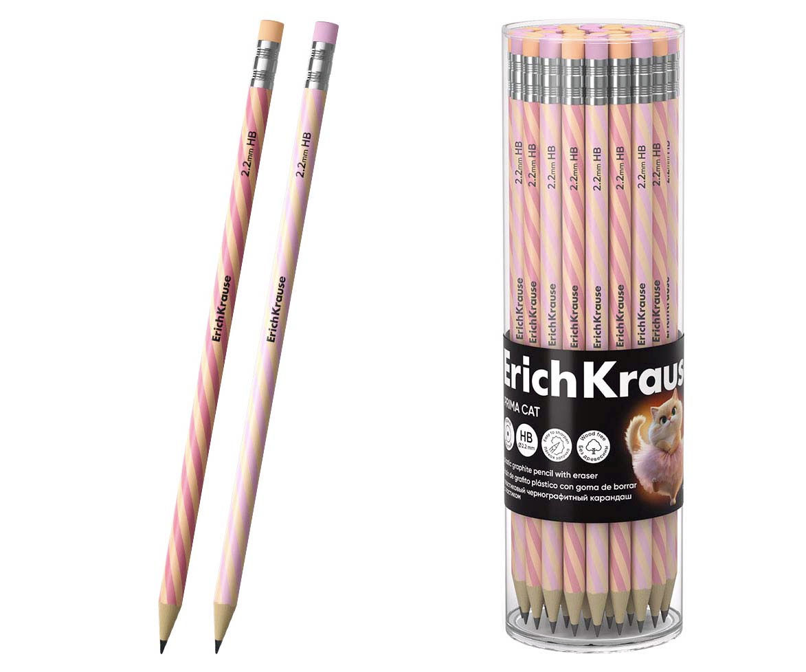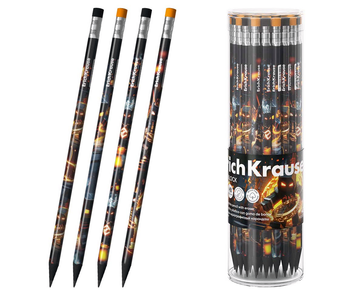 Круглый чернографитный карандаш из отборной древесины с ластиком, твердость ТМ, корпус карандаша имеет покрытие Soft-touch. Специальная пропитка древесины и сплошная проклейка грифеля обеспечивает высокую ударопрочность. Мягкая древесина и идеальная центр