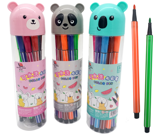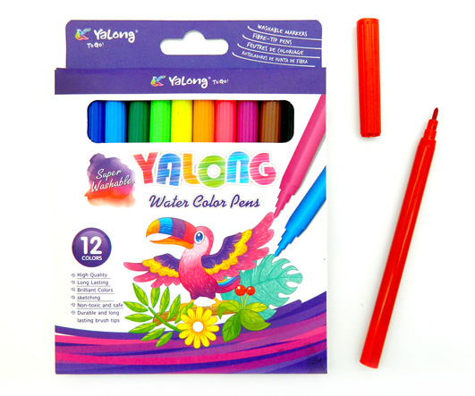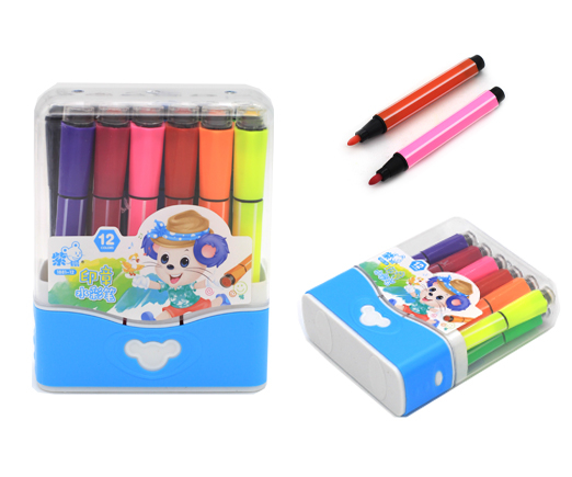 Фломастеры 12 цв. ZS-9 наконечник пулевидный, 3гр цветной корпус, смываемые, в пластиковой коробке ZS-204 (1/108)