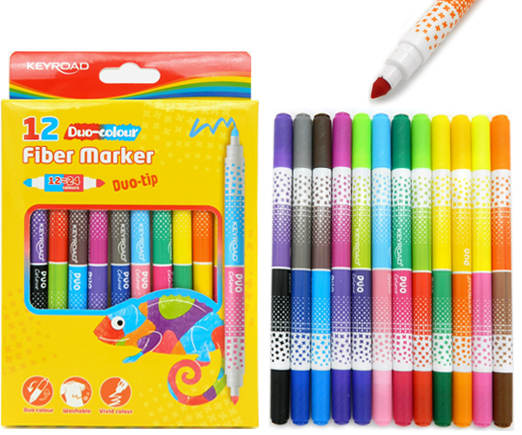 Фломастеры 12 шт. 24цв. KEYROAD KR972435 "Двусторонние" наконечник конус, смываемые, в к/кор (2/12/144)