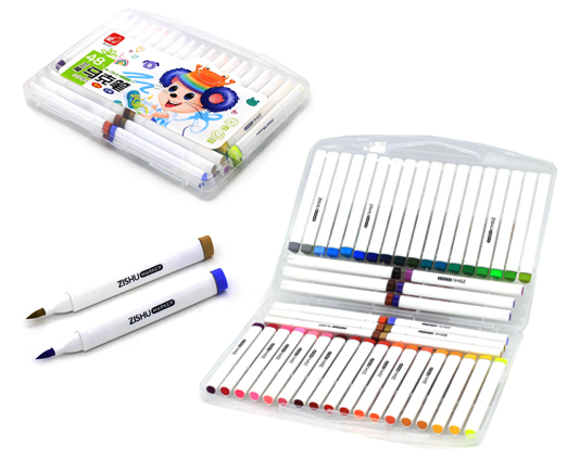 Фломастеры 24 цв. ZS-14 JUMBO наконечник кисть, 6гр полосатый корпус, смываемые, в пластиковой коробке ZS-231 (1/56)