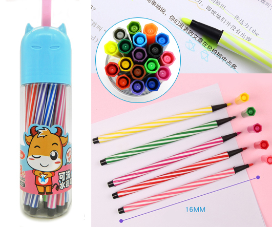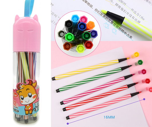 Фломастеры 12 цв. DA-303 круглый полосатый корпус, смываемые, в пластиковом тубусе JD-051 (1/36/144)