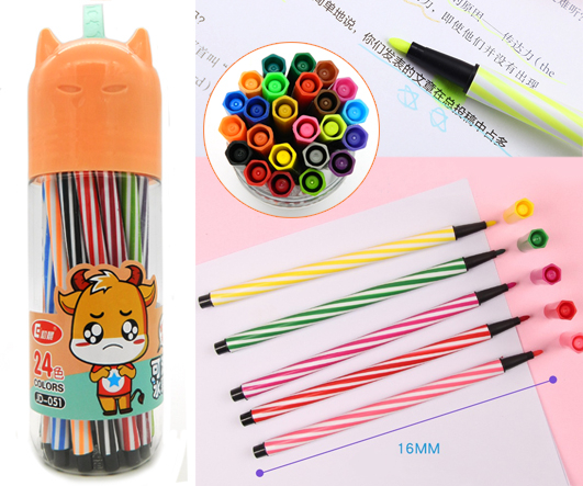 Фломастеры 24 цв. DA-305 круглый полосатый корпус, смываемые, в пластиковом тубусе JD-051 (1/18/72)