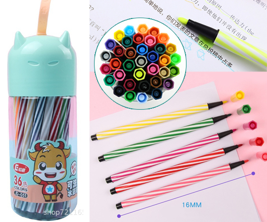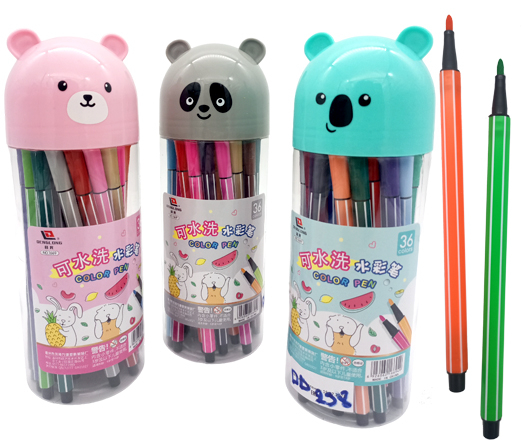 Фломастеры 36 цв. DD-238 Полосатый корпус, смываемые, ассорти, в пластиковый тубусе №1669-36 (1/20/80)