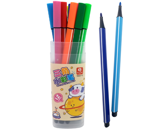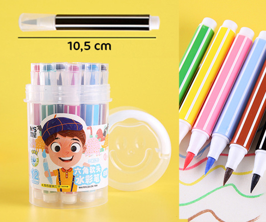 Фломастеры 12 цв. DD-233 Полосатый трехгранный корпус, смываемые, в пластиковом футляре №1998-12 (1/36/144)